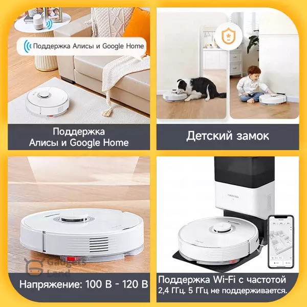 Особенности конструкции: акселерометр, датчик перепада высоты, индикатор заполнения пылесборника, лидар, мусоросборник в базе, мягкий бампер, станция самоочистки, датчик застрявшего колеса, датчик защиты от падения, датчик скорости вентилятора